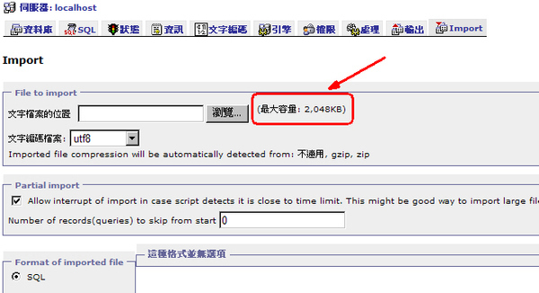 使用 phpMyAdmin import 時,
